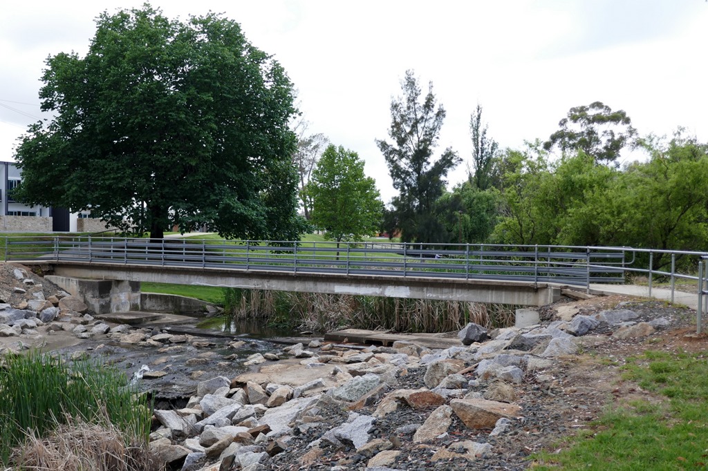 In typical Australian fashion the weir and the water control area was fenced and sign posted to warn of the perils. Unfortunately the ends of the fence were wrapped round a tree near the creek banks and you could just walk round it.