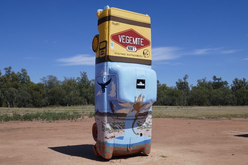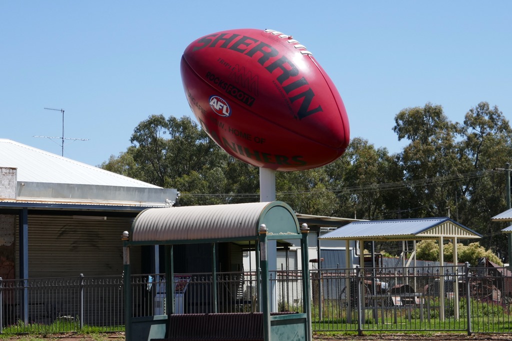 An otherwise non descript small town of Ungarie provided the next surprise. The town sign said “Ungarie – Home of Australia’s Biggest Football” and sure enough on a street of mostly empty and/or derelict shops was an AFL footie on a pole. (That description of the town is probably unfair it is no worse than many small towns I pass through)