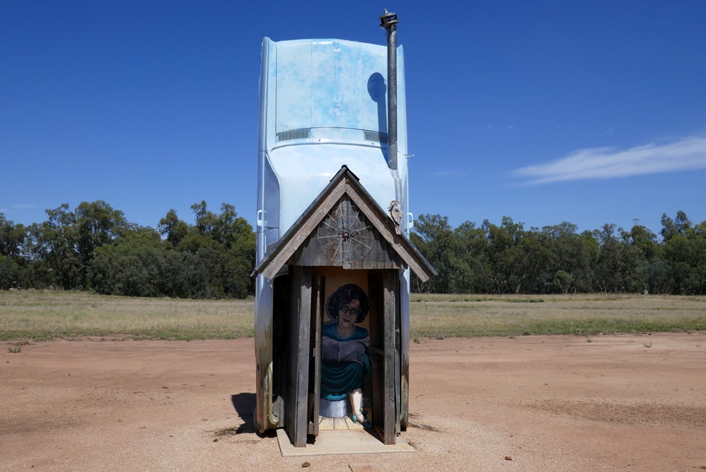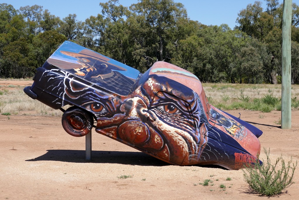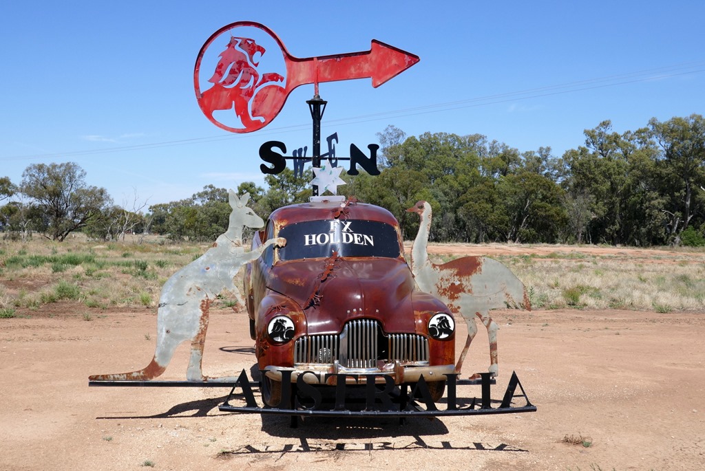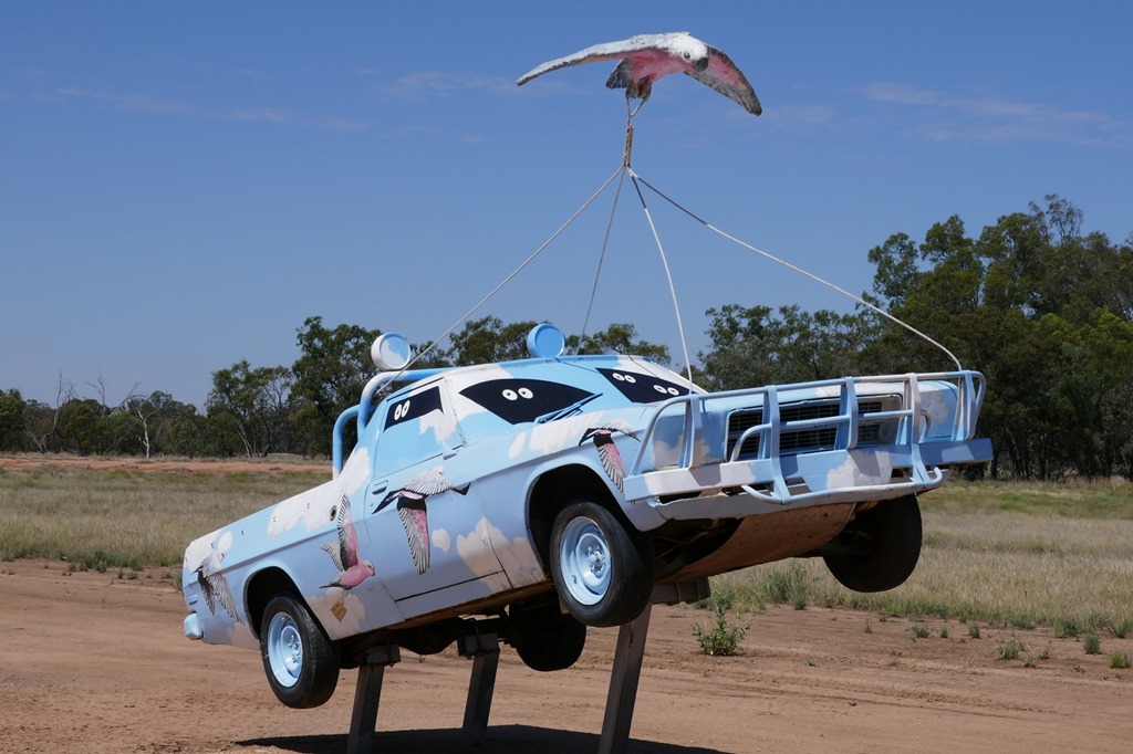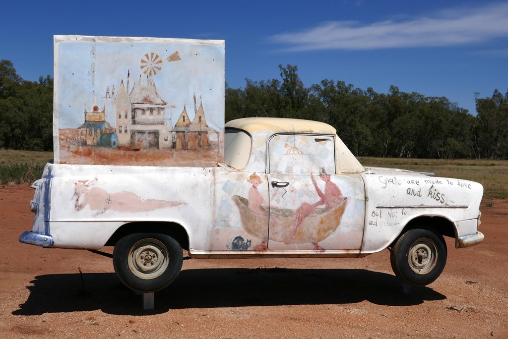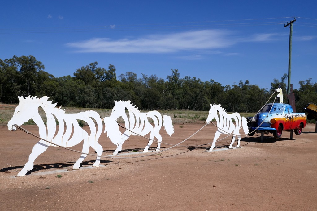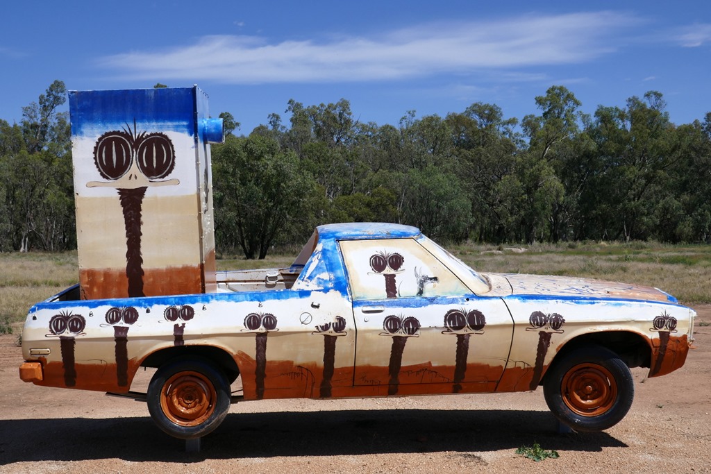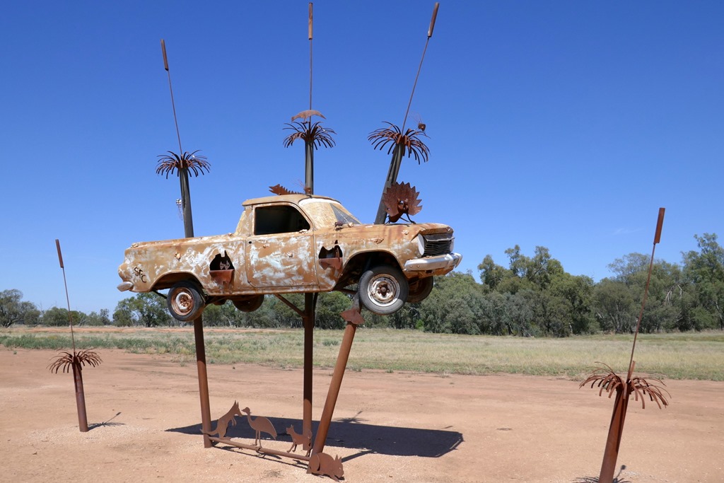 Headed north to Condobolin where I stopped to admire the “Utes in a Paddock” exhibit. Boy was it hot!