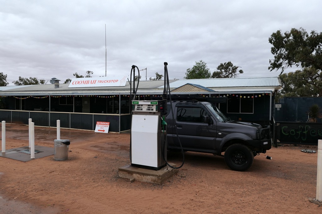 We had planned to get petrol and have lunch at Coombah roadhouse as it is the only fuel on this 265 km stretch of road but when we arrived it was completely shut up with locks on the fuel pumps despite the sign saying “Open 7 Days”.