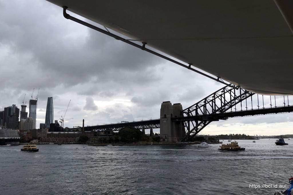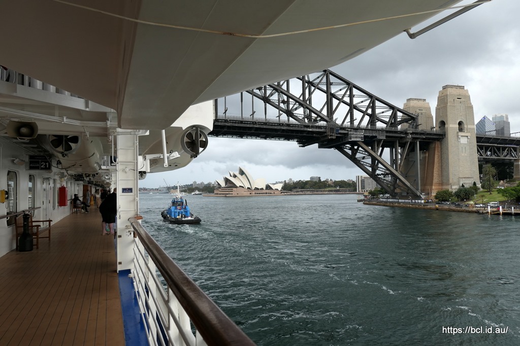 By the time I got my bag back to my cabin the ship was moving and before I knew it we were travelling under the harbour bridge.