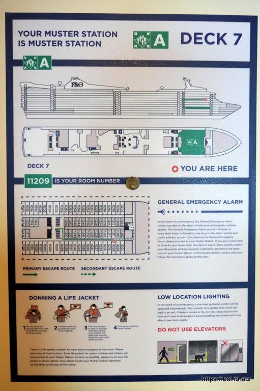 Once on board it was a matter of finding my cabin and waiting for my bag to arrive – finding a lift was the next challenge, I think the reception was on Deck 7 so I had to get to deck 11, the lifts were in great demand but eventually I did get to my deck and found my cabin. My pass key was waiting in the letter holder outside the door together with my meal times and the ship’s news paper.