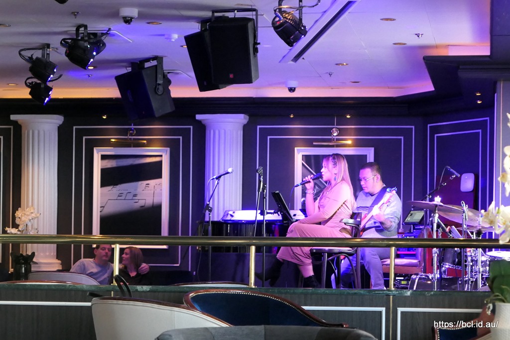 According to the timetable they provided my evening meal was in the Dragon Lady Restaurant. My meals are scheduled at a different restaurant each evening with different cuisine. Dragon Lady is Chinese, Angelo’s Italian and Waterfront is apparently modern Australian. I can change the venues but I will try each first. According to my schedule on Christmas Day I will eat at Angelo’s.