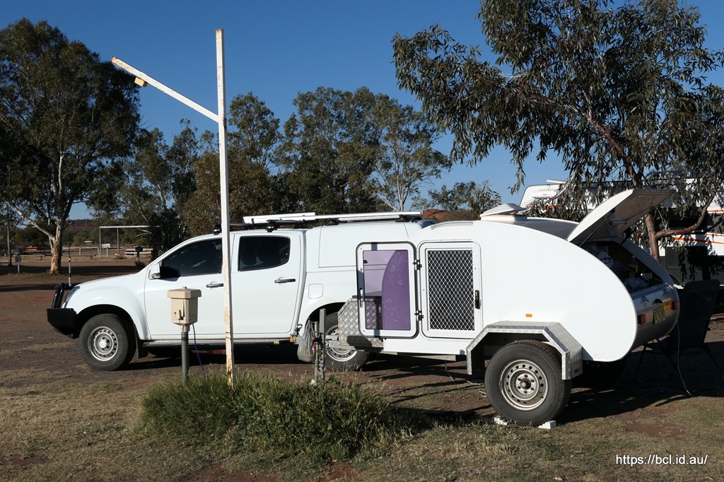 Dale had a swag on a stretcher another really good idea especially for free camping (I was sure I took a picture but I am blowed if I can find it), you can just see his car and swag in the background of the above photo. They are all so well set up.