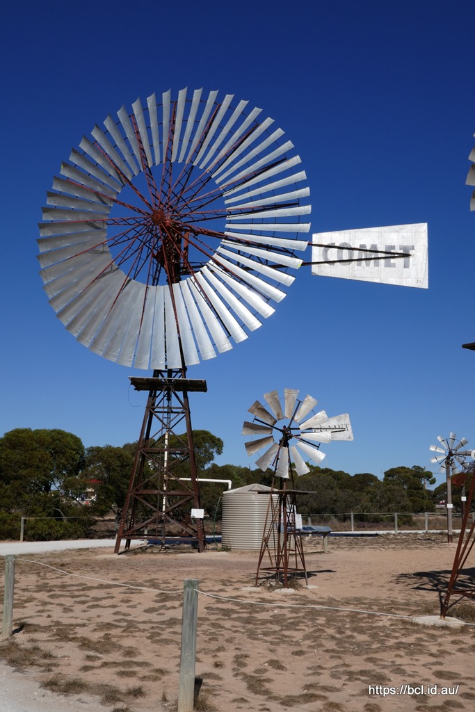 It was only about 80km to Penong, where I arrived just after midday, I had  booked a site a couple of days ago but when I arrived it seemed to have been forgotten but was able to get one though the park filled up by late afternoon. Once I had set up drove to the local servo to top up the tank and made a stop at Penong’s only attraction – its collection of windmills.