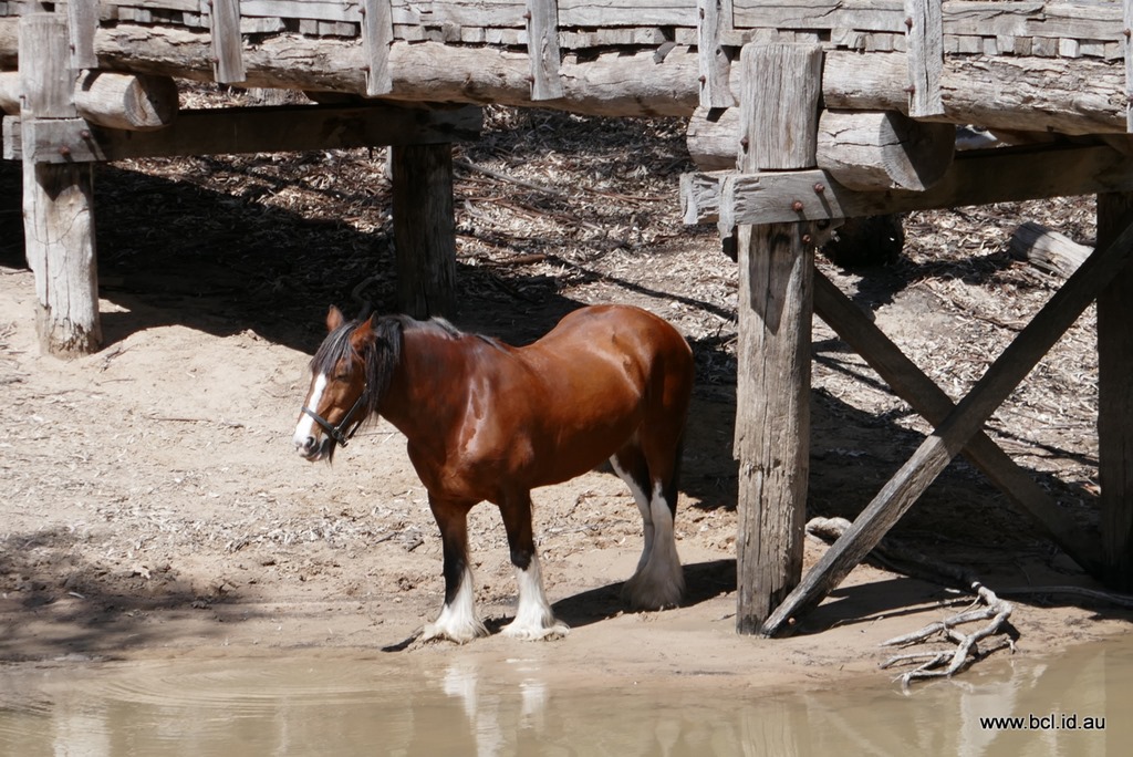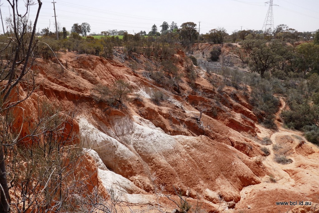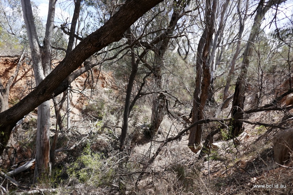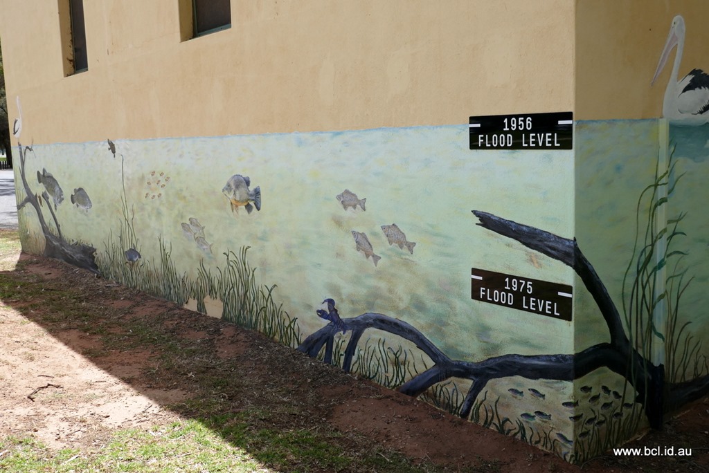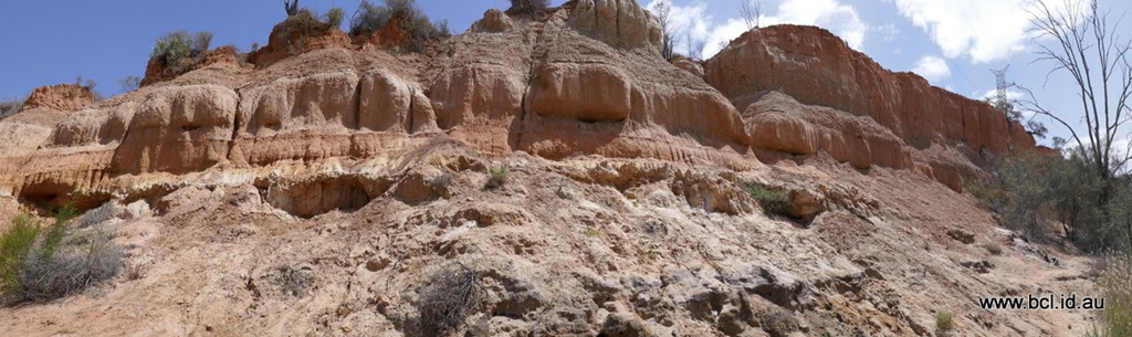 According to the local tourist guide there is an interpretive walk near the pumping station on the river and a board walk to view the red cliffs on/of the river bank which gave to town its name. Found neither… Did find the pumping station which was behind high, locked fences and the car park where the board walk was supposed to commence. In the end I scrambled along a difficult track and did get a glimpse of the cliffs (I think) but it looked as if the whole area was neglected and only used by dirt bikes.