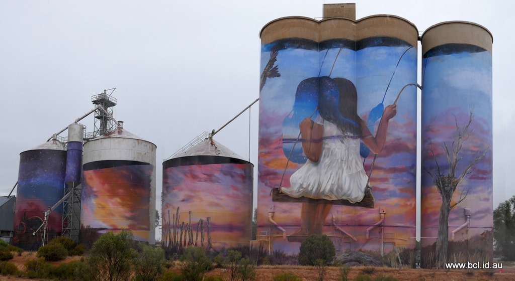 On the route, and shown on the map are “towns” like Merrinee with their own sign board but the place consists of a silo and absolutely nothing else (though one did have a Telstra hut).