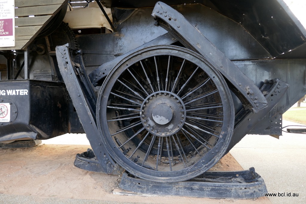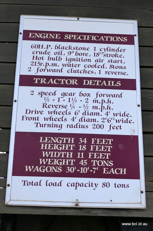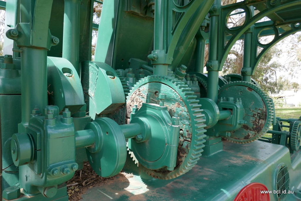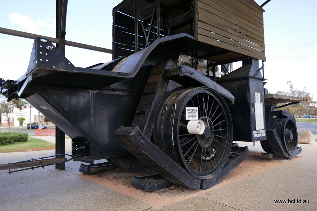 After this fiasco drove back to Red Cliffs shopping centre to see the mural on the water tower and Big Lizzie. The latter is an amazing 100 year old engine used to clear the Mallee scrub for agriculture, it had a single cylinder, 60hp oil engine, was enormous and moved at 2mph!