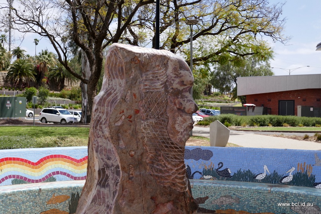 Near the  Red Cliffs shopping centre found and walked along the Peace Walk which was not particularly exciting but it did have some interesting information about the town. The area was originally settled after WWI when the land was cleared to provide soldier/settler blocks for returned servicemen and the town only really got going by 1925 when the post office was built.
