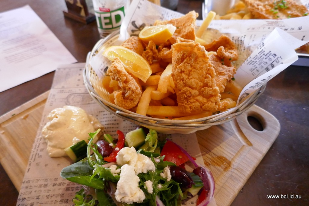It was not cheap – $99 for the two of us just to get in. The reality is that we had a really good time, think Old Sydney Town with a gold rush. It was very well done, we ate in a bakery advertising 3d pies (ha ha) $27 for fish and chips, $23 for salt and pepper squid, $7.50 for a bottle of Tooheys Dry but it was very nicely cooked and presented with all the staff young, cheery and in costume.