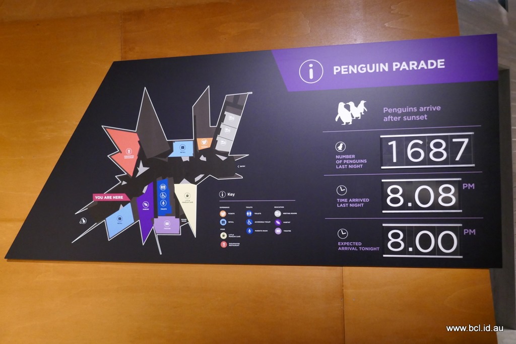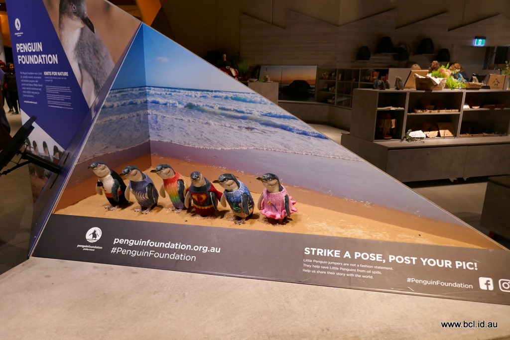 The Penguin Parade building was massive with food, souvenirs, information, rest areas, the lot – just before sunset made our way out to the viewing platforms. A fellow gave a talk about the penguins which was repeated in Chinese (I would guess that 90% of the visitors were Chinese tourists). I learned that of all the 18 species of penguins the Australian Fairy Penguins are the only ones that spend all day at sea and only come ashore en masse after sunset. It keeps them safe(r) from predators like raptors (Fairy Penguins are only about 33cm tall – ie snack sized), apparently the other 17 species come and go between the land and the sea as they please.