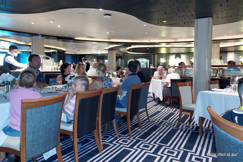 Dinner tonight  was in the Waterfront Restaurant and was quite enjoyable, I had grilled barramundi which was OK. Chatted to the couple at the table next to mine, they too were complaining that before Covid all the entertainment on a cruise was free but now some of it had an extra charge and the free entertainment  in the theatre was pretty ordinary.