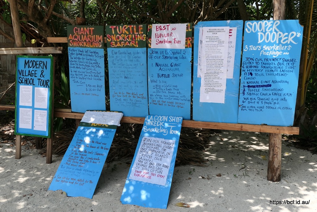 A minor irritation (because this annoys me on land too) – the only “ordinary” beer they stocked was VB in 375ml cans for $9 each, all the other beer was in 330ml stubbies and cost at least $9.50. I think the Adventure Hotel was the only bar with draught beer (that might be incorrect). Personally I don’t like drinking from cans but they were always willing to give me a (sometimes) chilled glass to pour it into however I really object to 330ml bottles they are an absolute rip off.