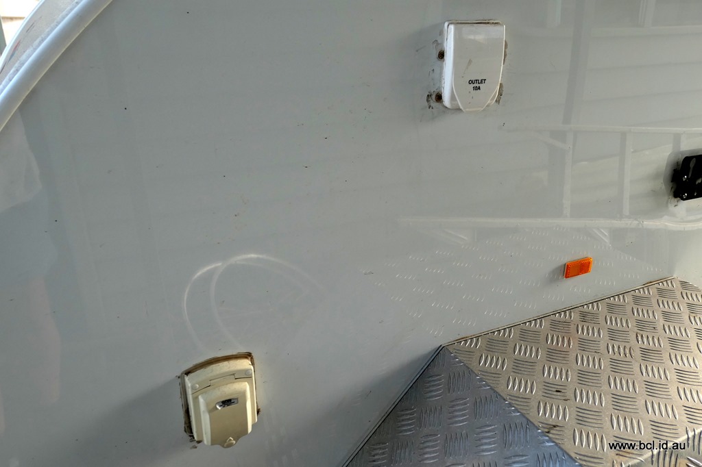 This was a big improvement but it soon became apparent that running an extension cord from the kitchen power point had its disadvantages so an external power point was added to the side of the trailer. The kitchen power point was also moved slightly to a more convenient spot. All the power points are double pole.